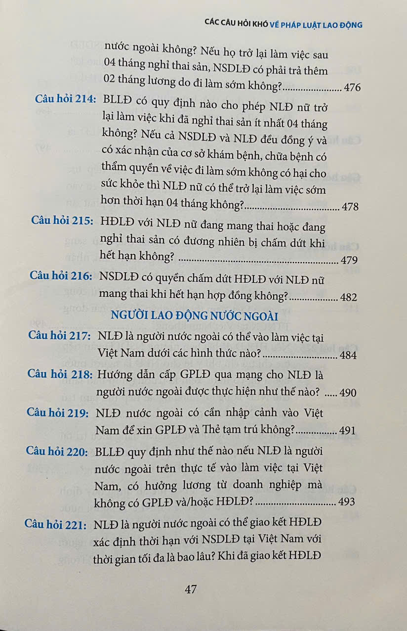 Hiểu đúng và áp dụng đúng luật lao động là thách thức lớn đối với doanh nghiệp. Trong thực tế, nhiều tình huống phức tạp phát sinh mà không phải lúc nào doanh nghiệp, người lao động cũng được xử lý đúng cách. Đó là lý do quyển sách "Các Câu Hỏi KHÓ Về Pháp Luật Lao Động" ra đời. Thông qua quyển sách, Luật sư Nguyễn Hữu Phước giải đáp những vấn đề khó khăn, hướng dẫn doanh nghiệp, người lao động hiểu rõ và biết cách áp dụng pháp luật lao động một cách hiệu quả vào thực tiễn. Đây là phiên bản cập nhật từ quyển "Các Câu Hỏi Thường Gặp Trong Pháp Luật Lao Động" với những điểm mới như: Giải đáp câu hỏi về dữ liệu điện tử và bảo vệ dữ liệu cá nhân theo Nghị định 13/2023/NĐ-CP. Trả lời những câu hỏi về Luật Bảo hiểm Xã hội 2014 với quyền lợi cho người lao động, bổ sung quy định xử lý tình trạng chậm đóng, trốn đóng BHXH, sửa đổi quy định về trợ cấp hưu trí xã hội,... Giải đáp thắc mắc về việc tuyển dụng, sử dụng lao động nước ngoài và những thủ tục liên quan....  Quyển sách phù hợp với: Chủ doanh nghiệp, những người làm Nhân sự, người lao động, luật sư nội bộ doanh nghiệp, luật sư tư vấn cho doanh nghiệp,... Luatvietbook xin trân trọng giới thiệu cuốn sách đến bạn đọc!