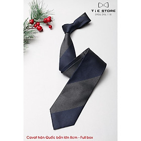 ✨Cavat 8cm bản lớn Hàn Quốc cao cấp, kẻ xám xanh - Tặng kèm hộp Full box