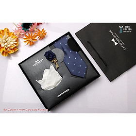 Hộp quà tặng gồm 1 cà vạt nam 8cm kích cỡ chuẩn 8cmx150 k. 1 hộp đựng cà vạt , 01 Khăn túi áo véc 20x20 cm , 1 cặp khuy áo măng sét cũng