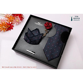 Cavat nam bản 8cm lót silk cao cấp nguyên hộp kèm khăn và khuy măng sét Giangpkc Qtp Sản phẩm cao cấp nguyên hộp quà tặng bản 8cm thích hợp cho trung niên - công