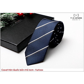 ✨Cavat Hàn Quốc bản nhỏ 6cm chuẩn công sở, chú rể - Cavat xanh kẻ trắng nhỏ cao cấp Full box