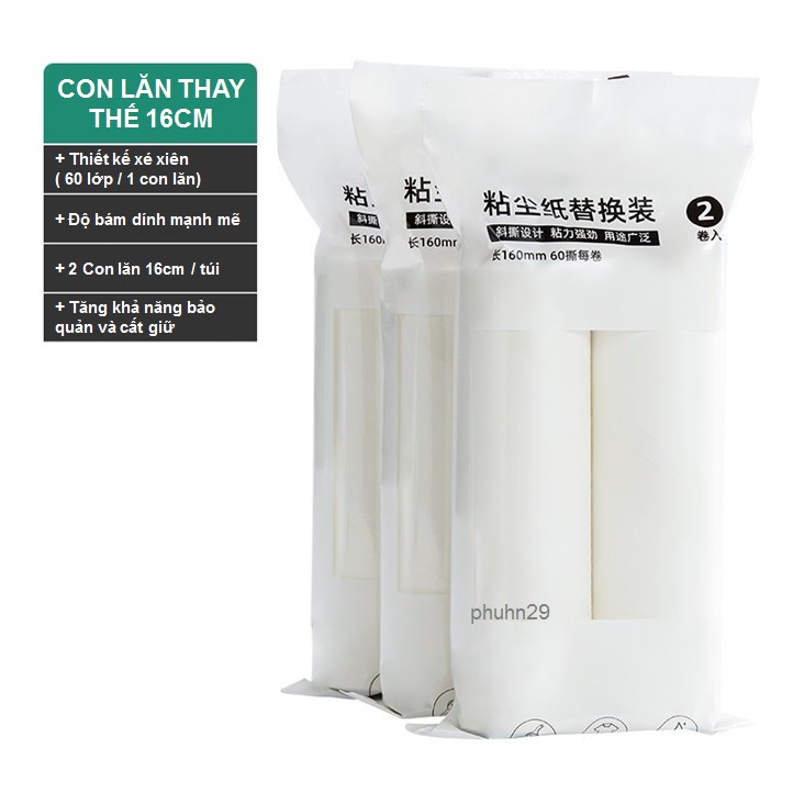 lõi giấy thay thế TCT 1690: gồm 3 lõi/1 bịch, 90 lớp, 16cm - Cây lăn bụi làm sạch: bụi, tóc, sợi vải thừa, lông chó mèo, rác…