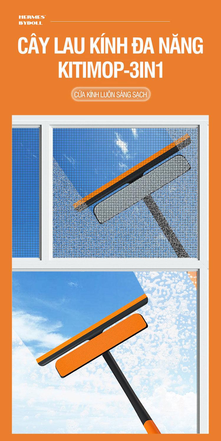 ✨Cây Lau Kính Thông Minh 3in1 Đa Năng Mini Xoay 360 Độ Nhỏ Gọn Tiện Lợi Với Tay Cầm Chống Trơn Màu Cam