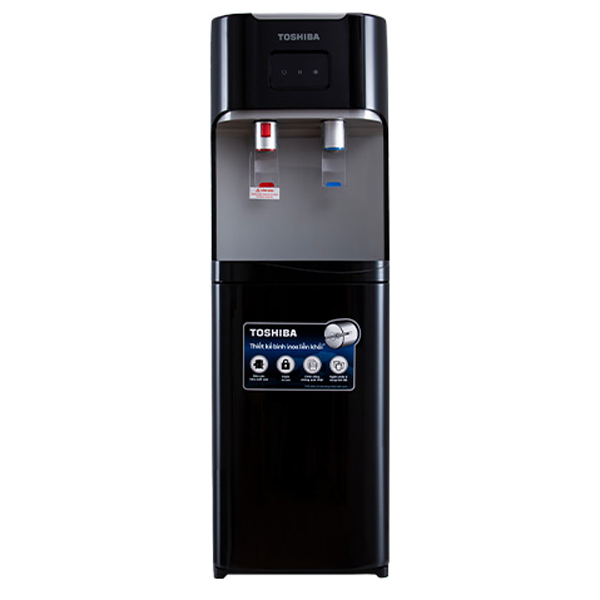 Cây nước nóng lạnh Toshiba thiết kế với màu đen sang trọng, kiểu dáng nhỏ gọn, hiện đại, dùng đẹp trong cả không gian kiến trúc gia đình, văn phòng, nhà hàng – khách sạn, khu