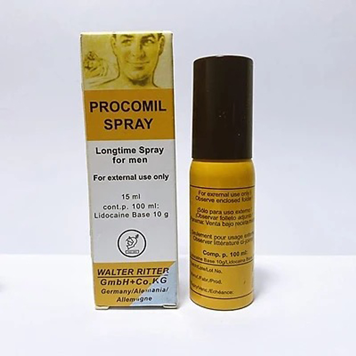 - Bình xịt Procomil có dạng xịt phun sương chứa thành phần Lidocaine giúp nam giới chống xuất tin sớm, kéo dài thời gian quan hệ hiệu quả. Sản phẩm có xuất xứ từ Đức, với hàm lượng Lidocaine Base 10g nên mỗi lần sử dụng các anh chỉ cần xịt một lượng nhỏ là đủ.- Procomil có dung tích 15ml tương đương khoảng 100 lần xịt, xét về giá thành sẽ giúp tiết kiệm hơn cho các anh so với một số sản phẩm có hàm lượng nhẹ hơn, thể tích nhỏ hơn.