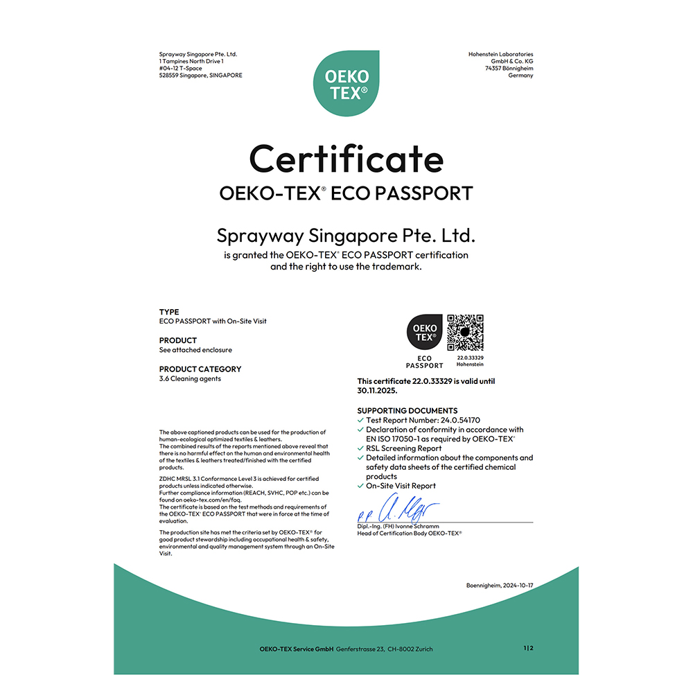 Chất tẩy không chứa chất Chlorinated, đạt tiêu chuẩn về an toàn môi trường. Đặc biệt, tất cả các sản phẩm Spot-lifter 833 của chúng tôi đều đạt chứng nhận OEKOTEX 3.6 & ZDHC 3.1