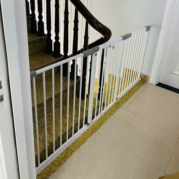 ĐẶC ĐIỂM THANH CỬA, CẦU THANG Kích thước linh hoạt từ 75-84cm Chiều cao tấm chặn 79cm Cửa có lò xo tự động đóng khi ra vào Thiết kế cố định 4 góc bằng
