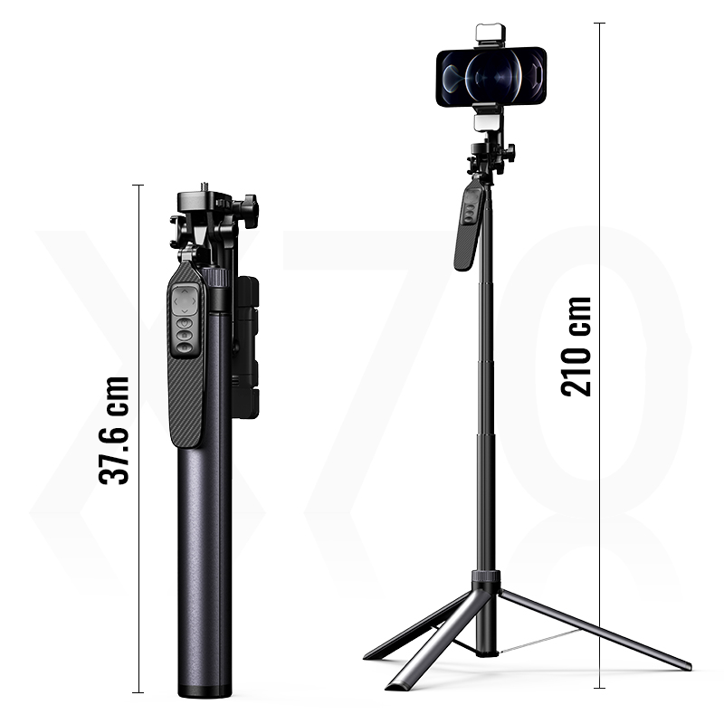Gậy chụp ảnh quay video 3 chân có đèn led trợ sáng Gậy tự sướng selfie chụp hình bluetooth điều khiển từ xa xoay nhiều góc độ loại tốt Đặc điểm nổi bật: - Chụp ảnh bluetooth đến 10 mét - Gậy chụp ảnh 3 chân tripod tiện lợi - Xoay điện thoại ngang dọc linh hoạt - Gấp gọn, co dãn điều chỉnh điện thoại thông minh - Phù hợp nhiều loại điện thoại hiện nay Lưu ý : Bên shop có 2 phân loại gồm : Gậy có đèn và Gậy không đèn ( Qúy khách đặt hàng chú ý chọn đúng phân loại cần mua ạ ) Chi tiết sản phẩm: 1. Loại có đèn led trợ sáng (bản nâng cấp): - Có điều khiển blueetooth, có xoay được điện thoại ngang, dọc, gập lên gập xuống - Có đèn led trợ sáng sạc điện (đã kèm sạc USB) - Với ưu điểm có đèn sẽ giúp bạn tăng sáng cho bức ảnh hoặc video bạn quay có độ sáng hơn và đẹp hơn hẳn - Màu sắc: Đen - Chất liệu: nhựa ABS+ inox - Pin: Cr1632 - Kích thước: chiều dài tối đa đạt 100cm - Điều khiển: sử dụng remote Bluetooth điều khiển từ xa khoảng cách lên đến 10 mét    2. Loại thường (không có đèn trợ sáng): - Có điều khiển blueetooth, có xoay được điện thoại ngang, dọc, chốt vặn gập lên xuống - Màu sắc: Đen - Chất liệu: nhựa ABS+ inox - Pin: Cr1632 - Kích thước: chiều dài tối đa đạt 100cm - Điều khiển: sử dụng remote Bluetooth điều khiển từ xa khoảng cách lên đến 10 mét    4. Gậy chụp ảnh XT-02 - Mã : XT02 - Có điều khiển blueetooth, có xoay được điện thoại ngang, dọc, gập lên gập xuống - Chất liệu: nhựa ABS+ inox - Màu sắc: Đen - Pin: Cr1632 - Kích thước: chiều dài tối đa đạt 80cm