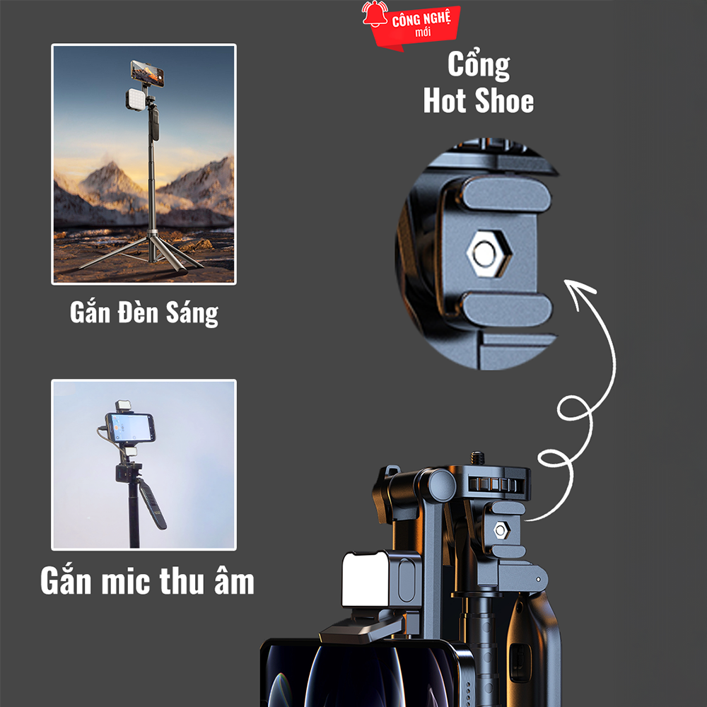 ✨Chân đứng quay video Shinoda, gậy livestream, selfie chụp ảnh chất liệu siêu cứng cáp, tay cầm 360º tích hợp remote điều khiển từ xa 7 phím có thể sạc lại, hàng chính hãng