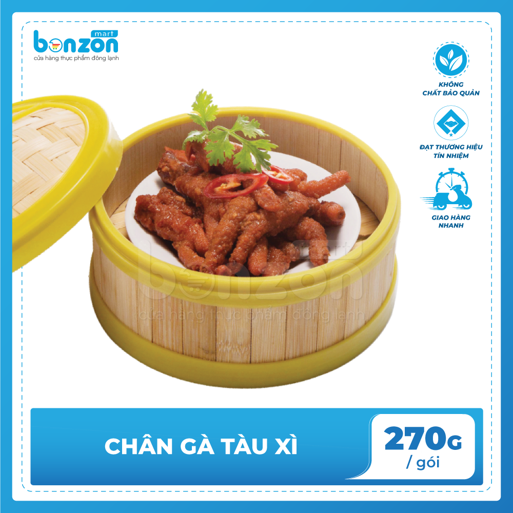 Với sản phẩm tươi sống, trọng lượng thực tế có thể chênh lệch khoảng 10%. ĐỊNH LƯỢNG: 270g THÀNH PHẦN: Chân gà (80%), nước, xốt xá xíu, dầu mè, tương ớt, tương tàu xì, tỏi,