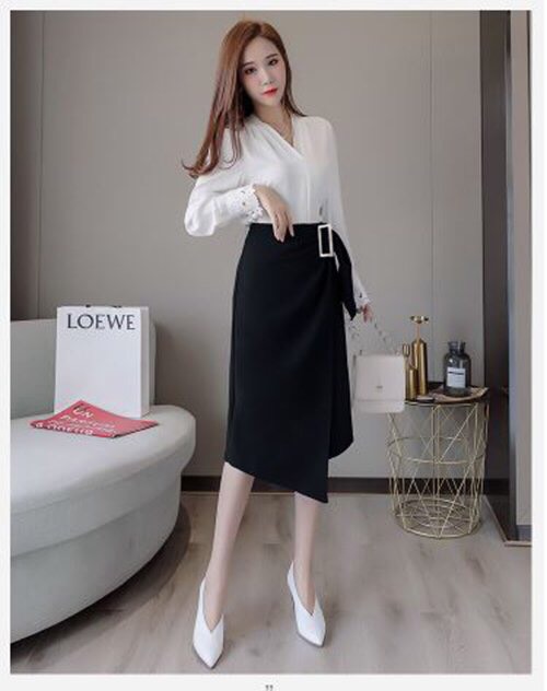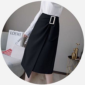 SẢN PHẨM: Chân váy công sở tà chéo phối khoen thon gọn vòng bụng - dài qua gối, nhiều size và màu, form dáng chuẩn thích hợp mặc đi làm, đi tiệc
