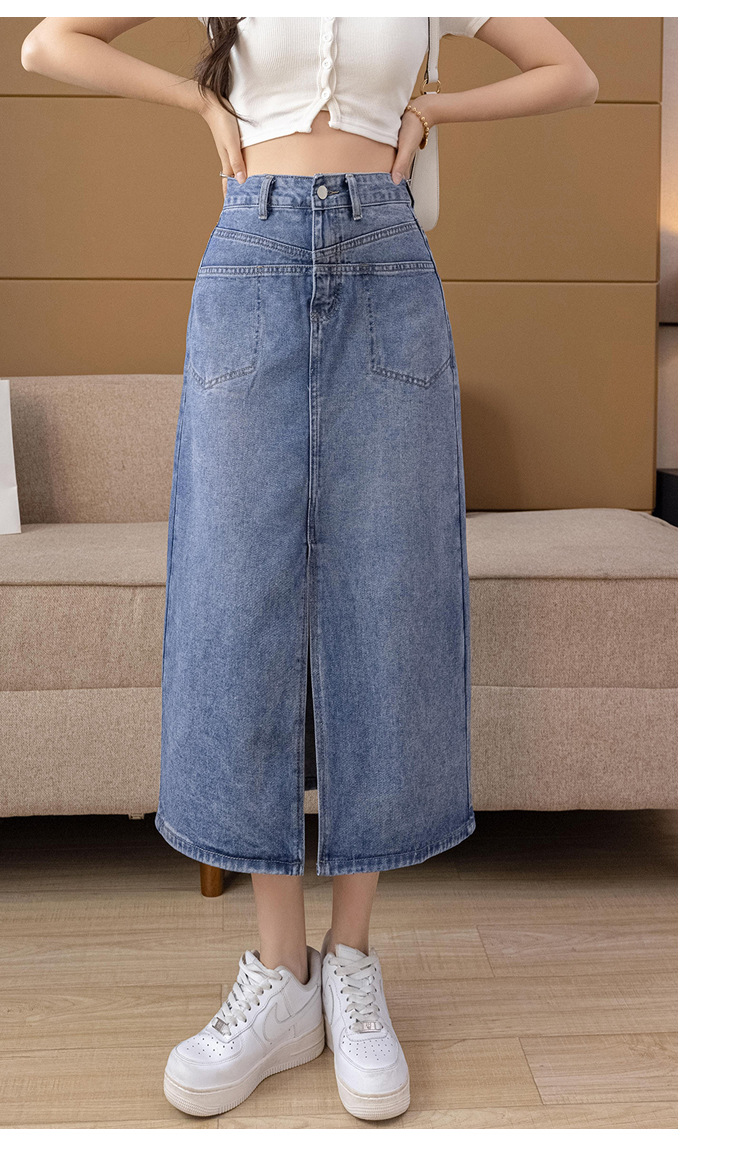 Mua tại Tiktok[CAO CẤP ] Chân váy jean ngang gối 07 C121 vải jean dày không co dãn dáng suông có túi to