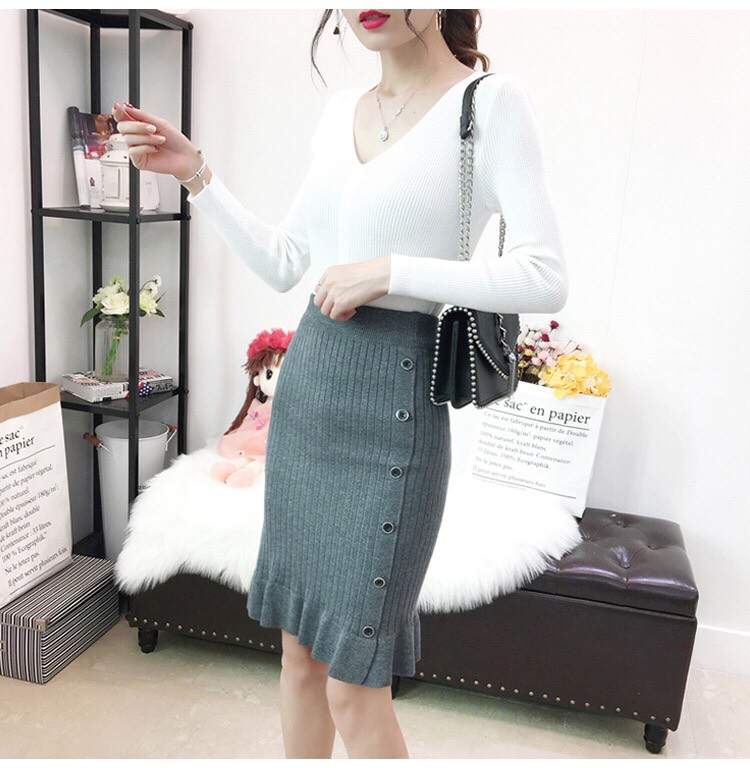 ✨Chân váy nữ,chân váy len đuôi cá phối cúc mẫu mới Cv10