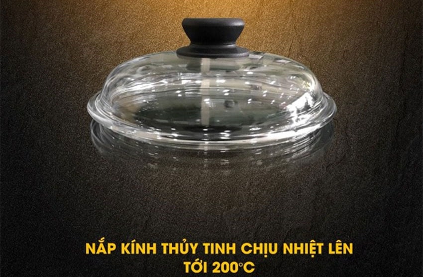 Nắp vung bằng kính chịu nhiệt lên tới 200 độ C.