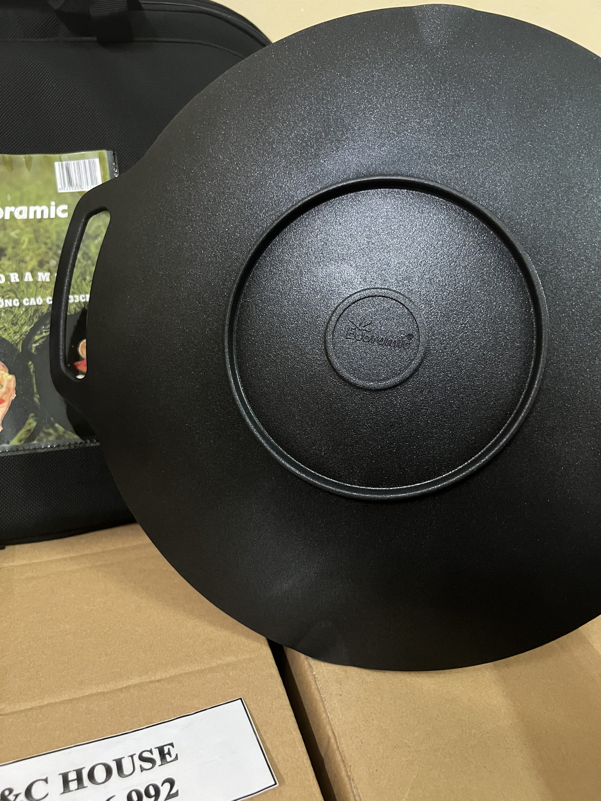 Size: 34 cm Chống dính tự nhiên Nướng tiệc gia đình, dã ngoạ Có thể tận dụng chiên xào như chảo Nướng các món bánh như bánh nướng, pizza, Lòng chảo rộng Sử dụng được