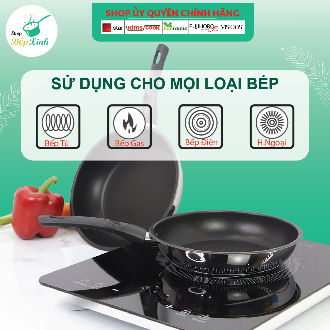 Chảo Fivestar Inox 430 chống dính đáy từ size 20cm, hàng 3 đáy bảo hành 5 năm - Zalo 0986588655