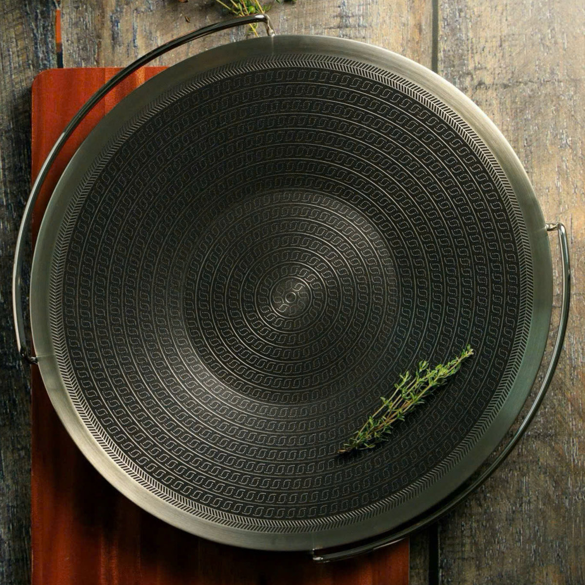 Size: 34 cm Chống dính tự nhiên Nướng tiệc gia đình, dã ngoạ Có thể tận dụng chiên xào như chảo Nướng các món bánh như bánh nướng, pizza, Lòng chảo rộng Sử dụng được