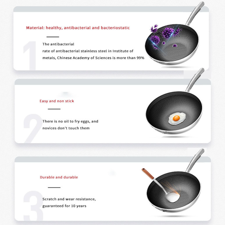 • Chảo tổ ong chống dính dạng tay cầm đáy liền 3 lớp Inox Sus304 vân chống trượt • Công nghệ Honey Comb - dạng tổ ong chống dính và chống quá nhiệt an toàn