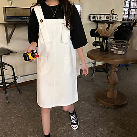 Mua tại TiktokĐầm yếm jean ngang gối đai bảng to cài nút, hàng xịn Quảng Châu cao cấp C155