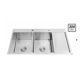 Inox 304 Kích thước chậu: 820x450mmx230mm Kích thước 2 hố: 370x380x230mm KT khoét đá: 790x425mm Kích thước 2 hố: 750mm
