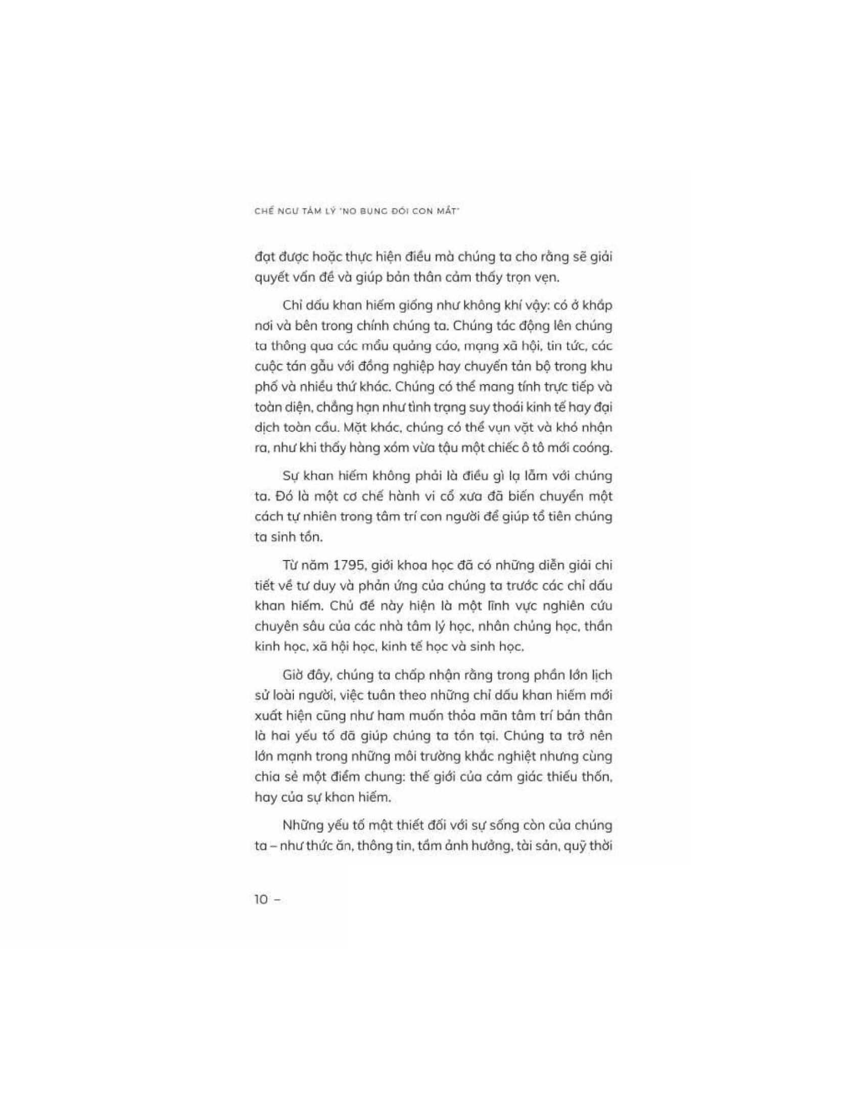 Chế ngự tâm lý “no bụng đói con mắt" của Michael Easter đưa người đọc vào một hành trình kích thích tư duy để tìm hiểu sự phức tạp của tâm trí con người và lý do đằng sau những ham muốn vô độ của chúng ta. Easter khám phá khái niệm về tư duy khan hiếm, "vòng lặp thiếu thốn" - một chu kỳ liên tục khiến chúng ta mong muốn sở hữu nhiều hơn trong các khía cạnh khác nhau của cuộc sống, từ thực phẩm và của cải vật chất đến thông tin cũng như sức ảnh hưởng.