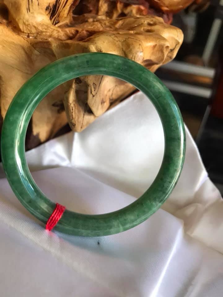 🌊💓Vòng cẩm thạch tự nhiên A LÝ 51mmx7,2mm Màu xanh lý nhẹ tô điểm 1 Vân Xanh Lý Đậm đẹp 50kg-57kg