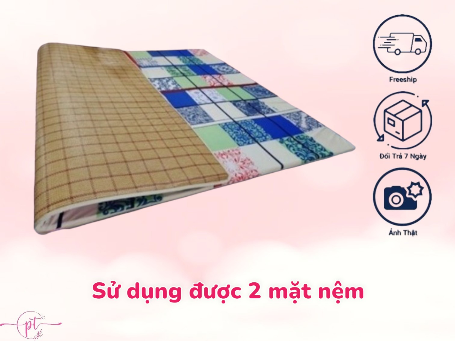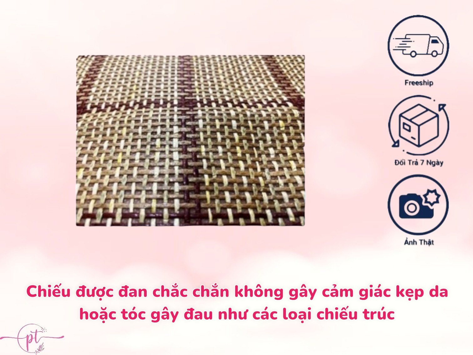 Mua tại TiktokVào mùa hè nắng nóng, sự mềm mại của những sợi vải nệm hoặc drap bỗng trở thành điều gây khó chịu vì chúng ôm sát cơ thể khi nằm, gây ra cảm giác hầm nóng (nếu bạn không có máy lạnh). Đó cũng là lí do mà chiếu điều hòa được sản xuất với tác dụng chính là mang lại sự thông thoáng cho vùng lưng người nằm, và đặc biệt phù hợp với những khách hàng yêu thích cảm giác nằm trên tấm lót mỏng dưới sàn. Cấu tạo sản phẩm gồm 3 lớp: