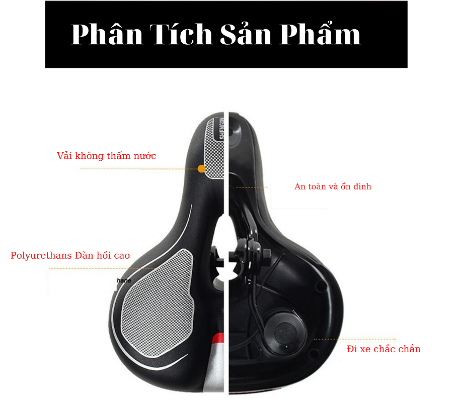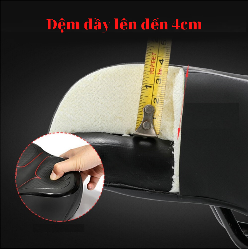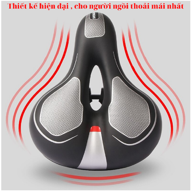 Đệm Yên Xe Đạp Thể Thao Đàn Hồi Mềm Dày Thoáng Khí Cao Cấp Giúp Êm Mông Thoải Mái (Bản Nâng Cấp) Chống Trượt, Siêu Êm Có Lỗ Rãnh Thoát (Thân Rộng) Chất liệu: Mật độ đục lỗ xốp dày hơn sẽ làm cho bạn cảm giác thoải mái hơn và cũng bảo vệ hông tốt hơn. Bền, nhẹ và linh hoạt: xe đạp ghế sử dụng thép chắc chắn xe  Ghế  Sắt là bền đẹp nhưng nhẹ dẻo siêu nhẹ và dẻo. Nó hoạt động tốt để làm giảm bumping áp lực bạn sẽ cảm thấy khi xe đạp đi vào một địa hình gồ ghề. Ứng dụng: Yên xe đạp sẽ tốt cho xe đạp leo núi,  xe đạp tập thể dục , xe đạp thể thao Kích thước: 250x200x90mm Trọng lượng: 715g Màu sắc: Đen đỏ Thoải mái: Thoải mái mềm mại, mềm với lò xo nâng cấp Chất liệu: Da PU, đệm mút Bọt biển đàn hồi cao, đáy PP, lò xo chống sốc, miếng dán phản quang; Miếng dán phản quang giúp đạp xe an toàn ban đêm hơn Bề mặt Da chịu mài mòn cao Thoáng khí hơn với thiết kế khí động học