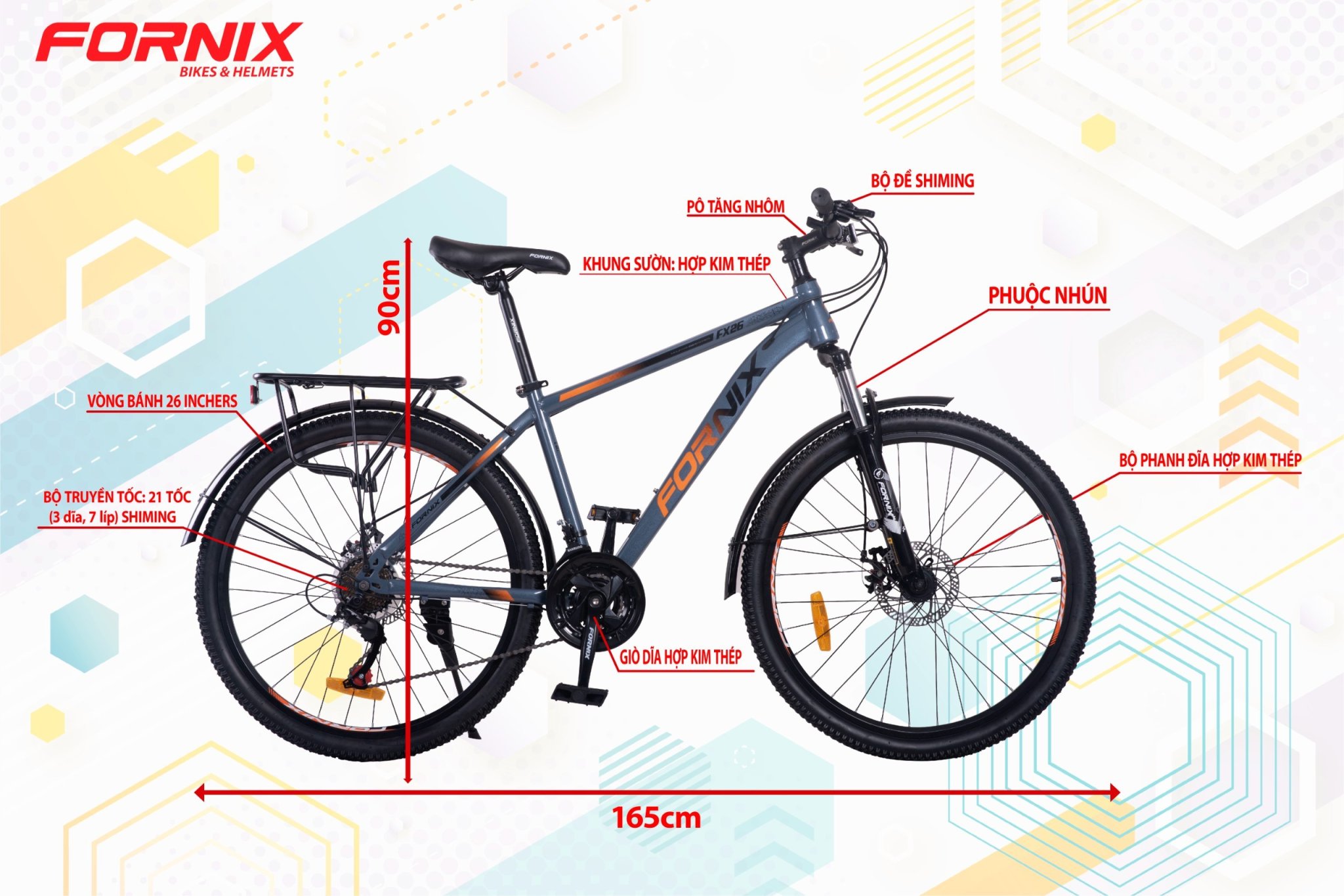 Xe Đạp Địa Hình FX26 Plus-FORNIX-vòng bánh 26"-Bảo Hành 12 Tháng THÔNG TIN VỀ SẢN PHẨM - Thương hiệu: Fornix - Khung Sườn Hợp Kim Thép - Bộ chuyển động 21 Tốc Độ ( 3