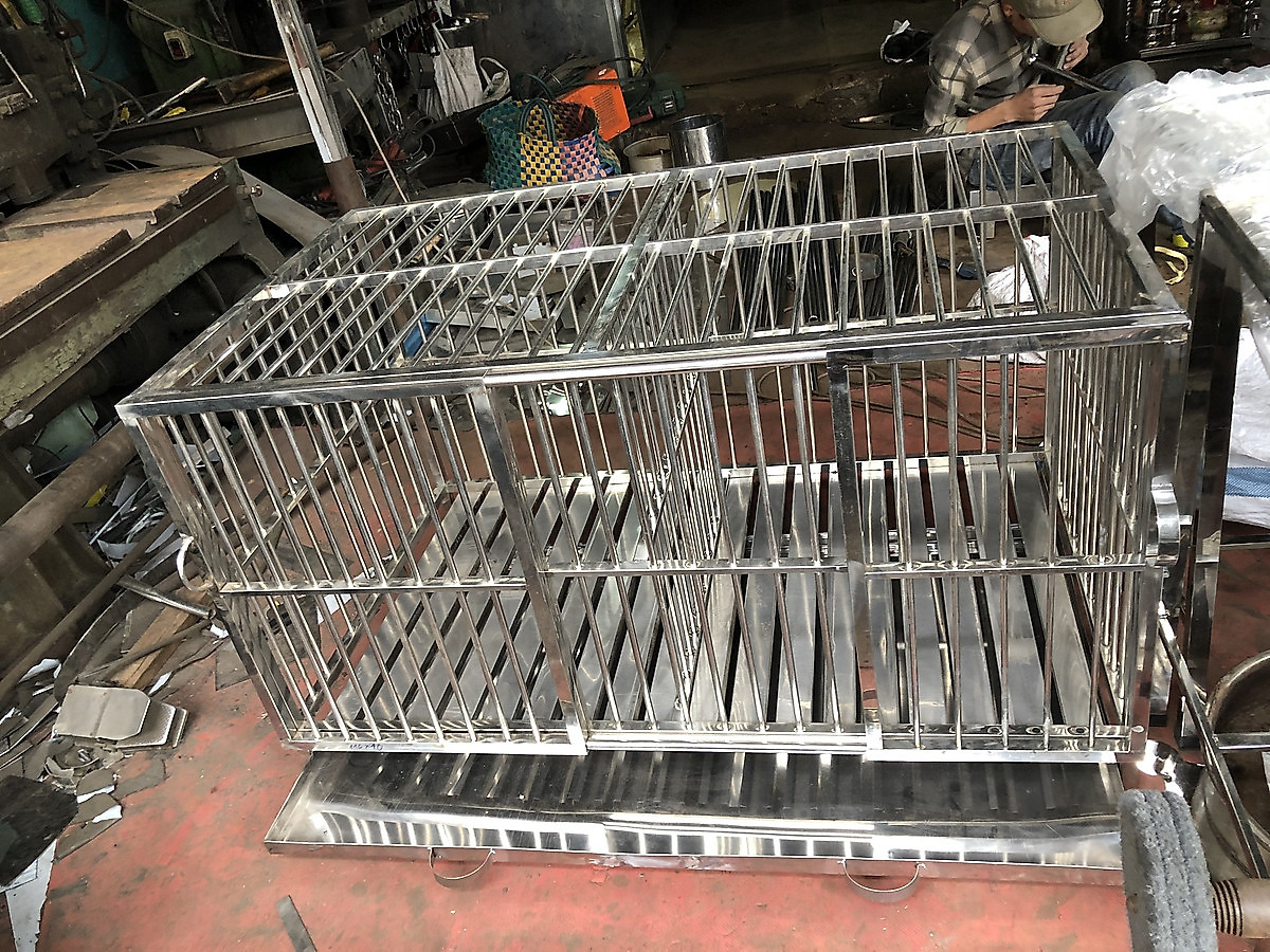 SÀN INOX CHẮC CHẮN, Inox 201, Có máng đựng phân inox bên dưới, Sản xuất tại Việt Nam. - Kích thước tùy chọn theo yêu cầu R40xD60xC60: Thích hợp Chó Nhỏ Phốc huơu, phốc sốc,