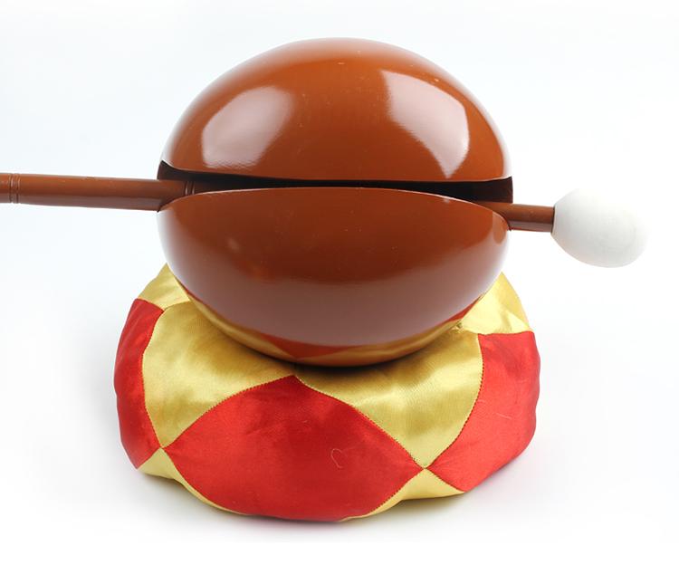 _ Mõ tụng kinh niệm phật được làm bằng chất liệu gỗ mít liền khối tự nhiên 100% ,Và được sơn pu phun mầu mận chín _ Kích thước 12cm + dùi đánh và đế