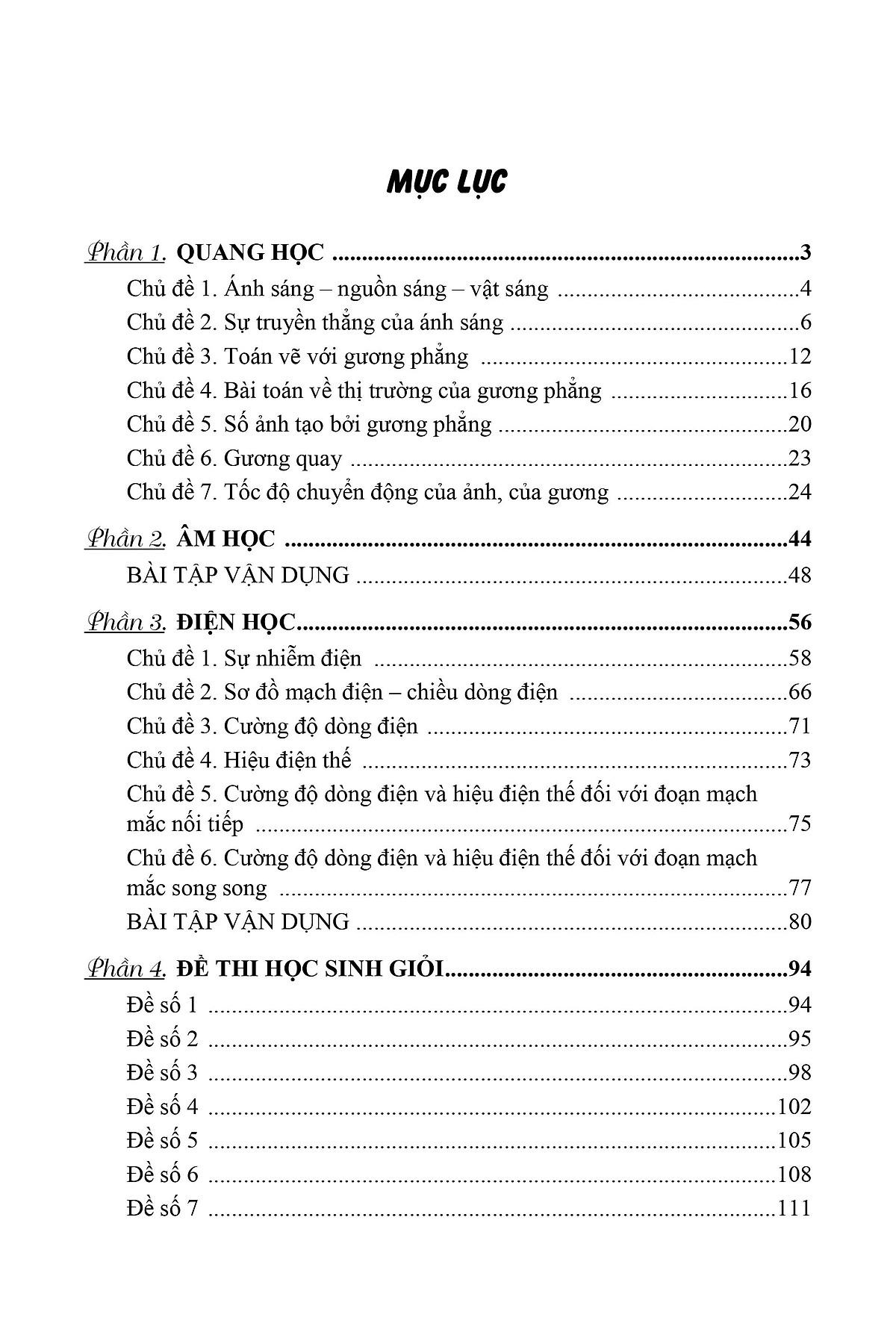 Trong mỗi phần lại được chia thành nhiều chủ đề nhỏ để người học dễ tiếp cận kiến thức. Các câu hỏi được sắp xếp theo trình tự khoa học từ dễ đến khó, bài trước là tiền đề cho bài sau. Các dạng bài tập trong sách đều được trích lọc, tuyển chọn từ các kì thi học sinh giỏi cấp trường, cấp tỉnh.