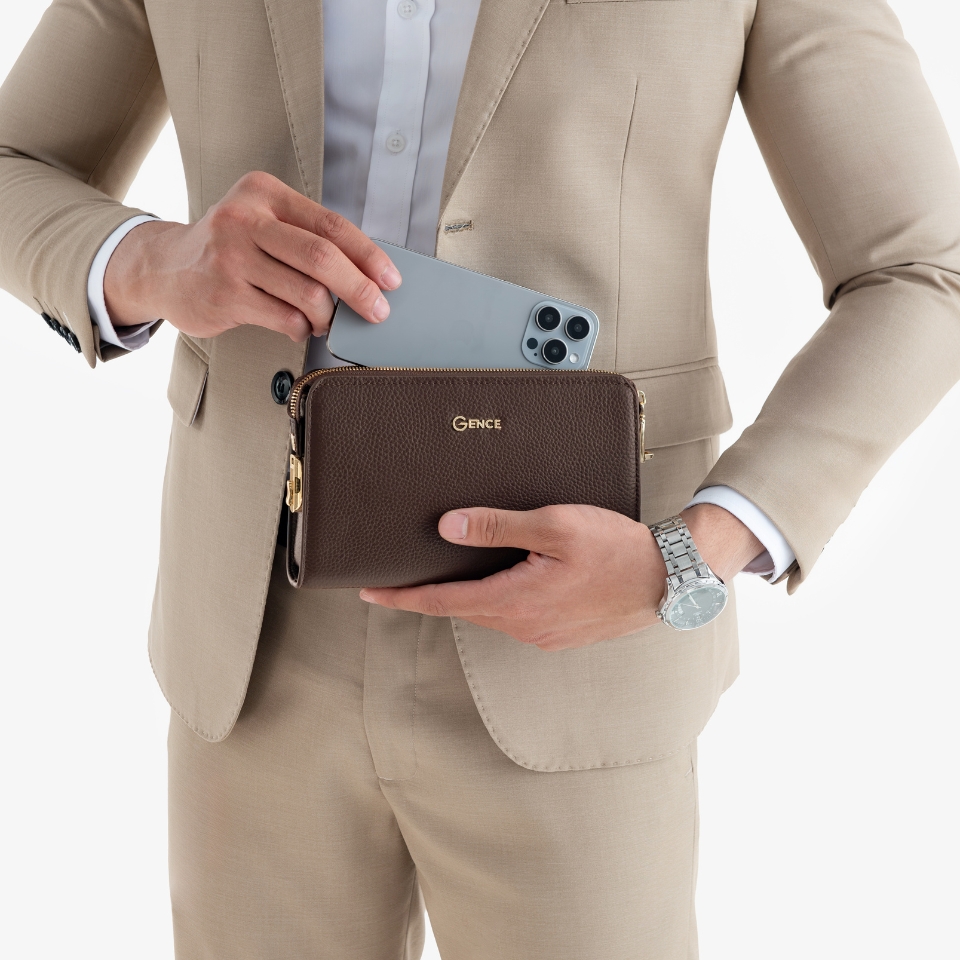 ✨Clutch Nam Ví Cầm Tay GENCE RB07 Da Bò Khóa Số Cao Cấp Màu Nâu