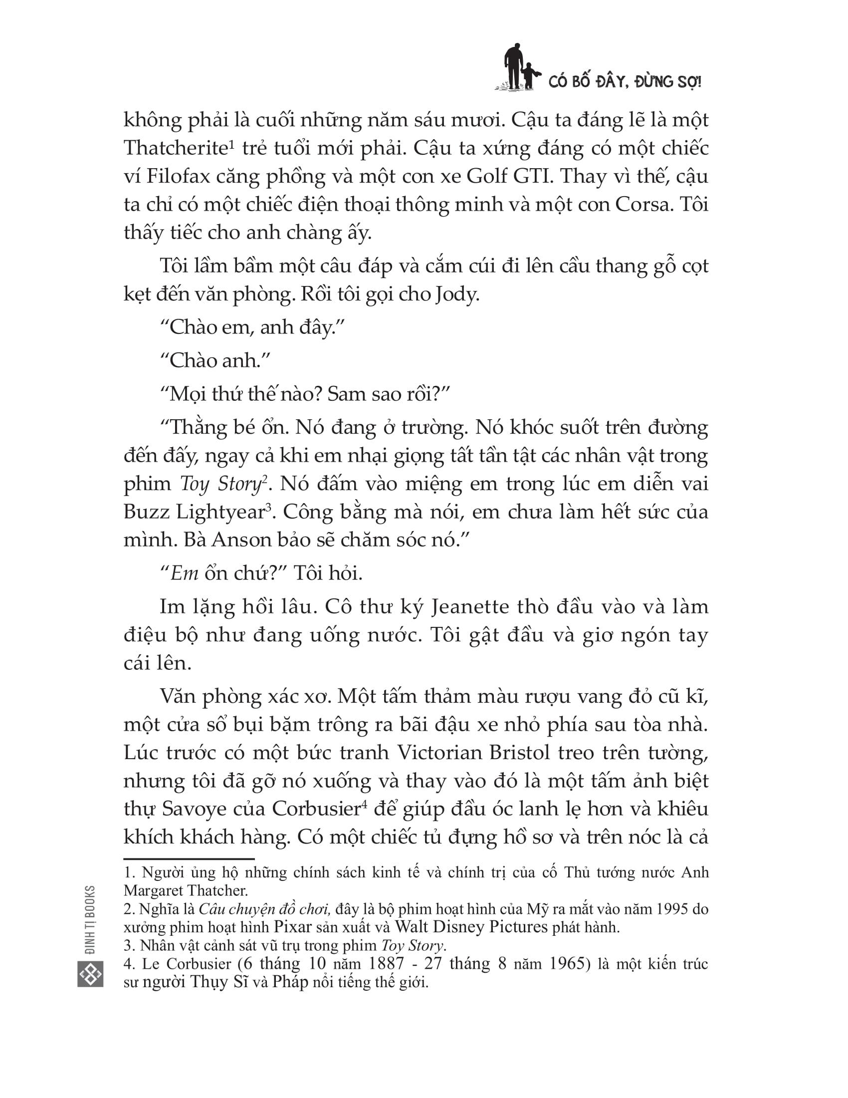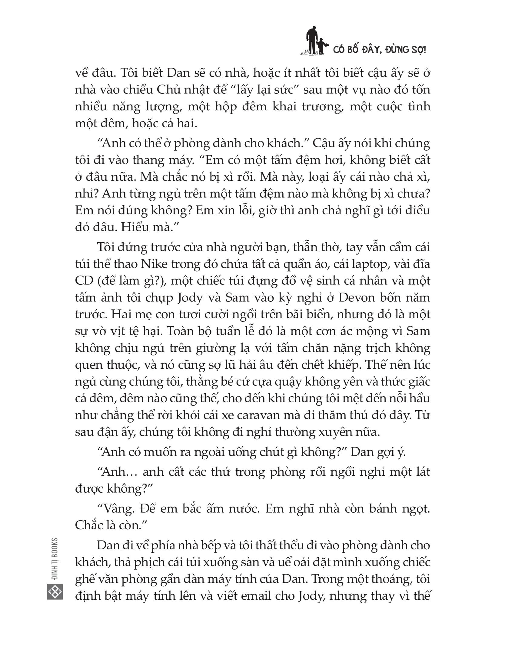 "Có bố đây, đừng sợ! sẽ khiến bạn mỉm cười và bật khóc cùng một lúc, một cuốn sách bạn sẽ không thể quên được trong thời gian dài." - Brenda Janowitz, author of The Dinner Party