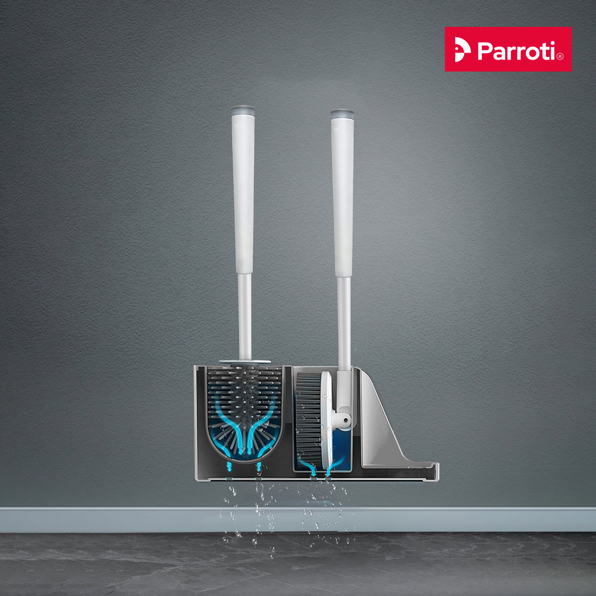 - Bộ cọ bồn cầu Parroti Silicon có thêm cốc đựng chất tẩy, giúp bạn tiết kiệm chất tẩy bằng cách hòa vào cốc, bạn có thể nhúng đầu cọ vào khi chùi toilet. Sau khi sử dụng xong, bạn yên tâm dựng đầu cọ vào cốc đựng một cách gọn gàng tinh tế.