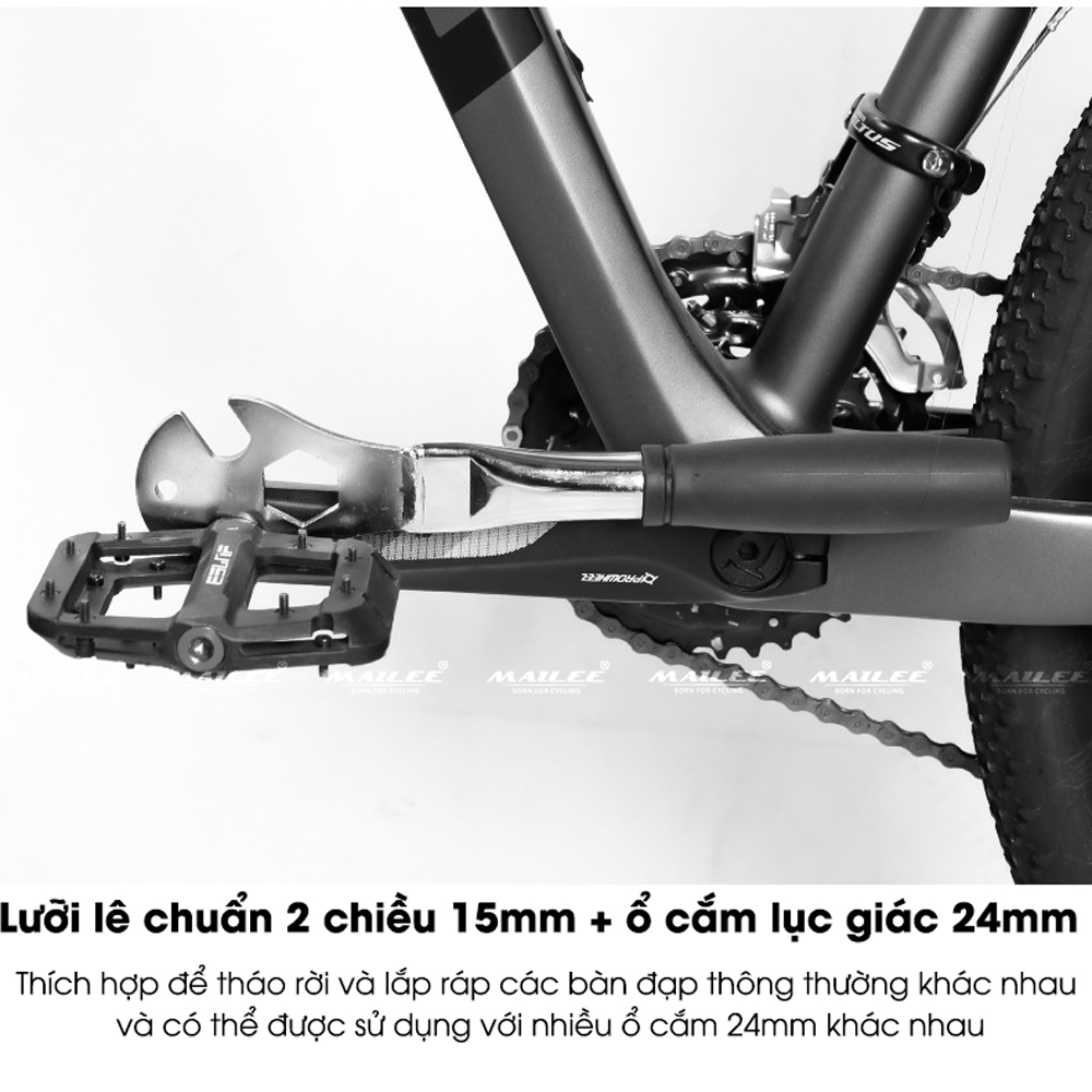 Mua tại TiktokCờ lê Tháo bàn đạp pedan xe đạp, tháo trục bánh xe trước sau, size 15mm 24mm 9/16" chất liệu thép không gỉ, tay cầm PVC chống trượt - Mai Lee Dụng cụ tháo dỡ bàn đạp xe đạp Dụng cụ tháo dỡ bàn đạp xe đạp được làm từ thép cứng cáp, trải qua quá trình tôi luyện và phủ 3 lớp mạ điện, chống gỉ sét hiệu quả. Bề mặt sản phẩm được xử lý phun cát, tạo độ bám chắc chắn.