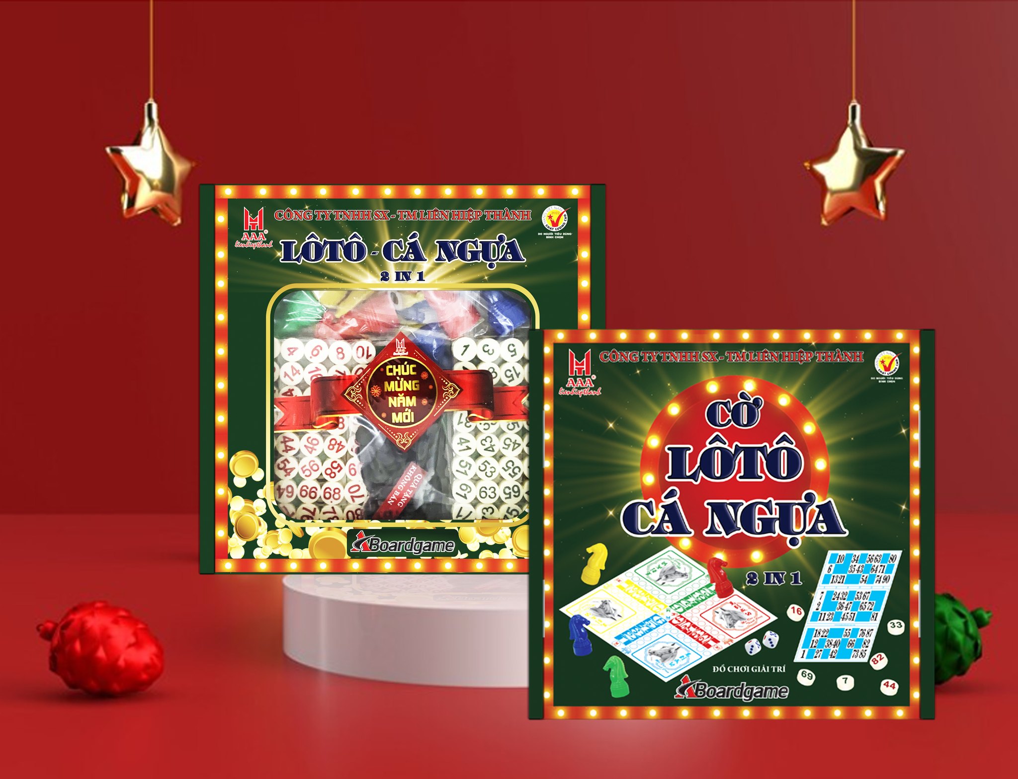 Mua tại TiktokTên sản phẩm: CỜ LÔ TÔ - CÁ NGỰA Thông số kỹ thuật: Gồm 2 loại cờ: Cờ Lô Tô, Cờ Cá Ngựa Chiều cao quân cờ cá ngựa: 70 mm ± 1 Đường kính đáy quân cờ cá ngựa: 29 mm ± 1 Diện tích bàn cờ cá ngựa: 440 mm ± 1 x 440 mm ± 1 Đường kính quân cờ lô tô: 18 mm ± 1 Kích thước thẻ cờ lô tô: 151 mm ± 1 x 248 mm ± 1 Hộp: Cờ cá ngựa gồm 16 quân, 02 xúc xắc Cờ lô tô gồm16 thẻ cờ, 90 quân cờ, túi vải