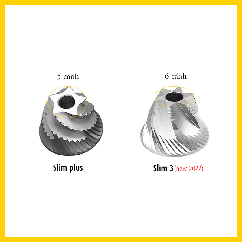 Cối Slim 3 vẫn tiếp tục phát huy những ưu điểm về ngoại hình giống như Slim tiền nhiệm và có một số điểm nâng cấp đặc biệt như sau: + Lưỡi S2C - 6
