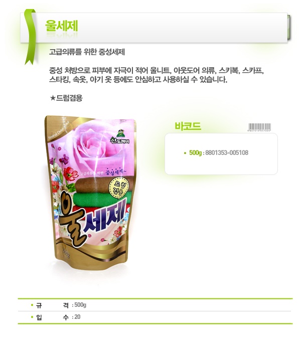 Nước giặt hương nước hoa Sandokkaebi túi 500ml Xuất xứ: Hàn Quốc/ Made in Korea Dung tích: 500g Nước giặt vải len, vải dạ, nỉ Sandokkaebi 500g là loại nước giặt chuyên dụng dành riêng để giặt áo len, áo dạ, quần áo nỉ, quần áo thể thao & quần áo, đồ lót trẻ em giúp cho quần áo, vải  bền đẹp, không làm phai màu vải, giúp sợi vải mềm mại, không bai, xù và đặc biệt không gây ra hiện tượng tĩnh điện Với công thức đặc biệt nước giặt vải len, vải dạ, nỉ Sandokkaebi  giúp khử mùi hiệu quả & làm sạch quần áo một cách nhanh chóng tức thì chỉ với một lần ngâm & vò nhẹ. Mùi hương thơm mát, cùng tác dụng làm mềm vải vượt trội cho quần áo luôn mềm mại & thơm tho suốt cả ngày. Cồng thức Keep color Bright giữ màu vải luôn sáng đẹp như mới Tính năng: Nước giặt vải len, vải dạ, nỉ Sandokkaebi kết hợp giặt được cho mọi quần áo trẻ sơ sinh, trẻ nhỏ & gia đình Trọng lượng: 500g/ túi Thương hiệu: Sandokkaebi Xuất xứ: Hàn Quốc HDSD: Giặt tay: Hòa 01 muỗng 30ml nước giặt với 3~4L nước, ngâm quần áo giặt trong khoảng 30 phút, Vò/chà quần áo sau đó xả lại bằng nước sạch từ 3~5 lần, phơi khô Giặt Máy: Hòa 02 muỗng 30~50ml nước giặt tương ứng với 20L nước,Bật chế độ giặt xả cần giặt sau đó phơi khô