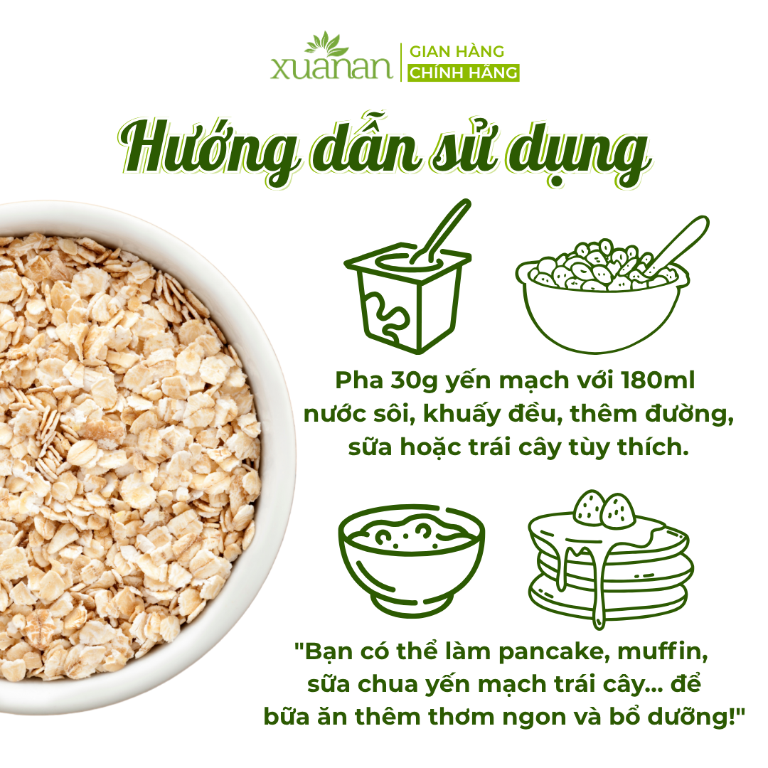 Yến Mạch Nguyên Chất Ăn Liền Xuân An Thành Phần : 100% Yến Mạch Nhập Khẩu Từ Úc Công Dụng: Là Loại ngũ cốc siêu tốt Thêm yến mạch vào khẩu phần ăn hàng ngày