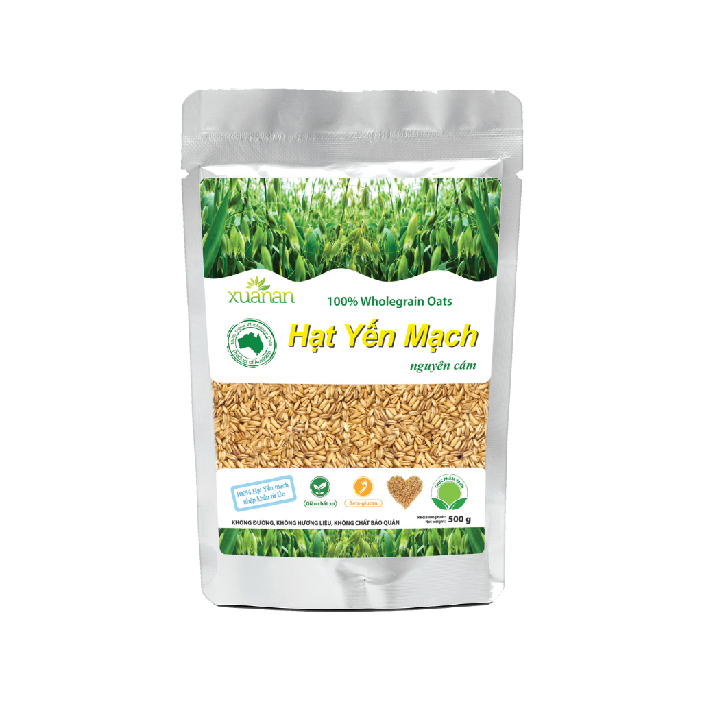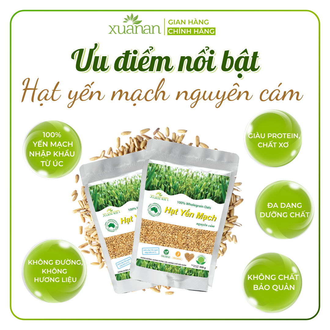 Yến mạch Úc Xuân An có nguyên liêu nhập khẩu trực tiếp 100% từ Úc . Sản phẩm có nhiều nhựa , trắng hơn và dai hơn .