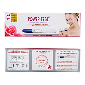 Tên sản phẩm: Que thử thai PowerTest Kích thước test: rộng 5mm Tính năng: Phát hiện thai sớm sau 6 -9 ngày trứng rụng ƯU ĐIỂM: Phát hiện thai sớm sau 6 -9 ngày