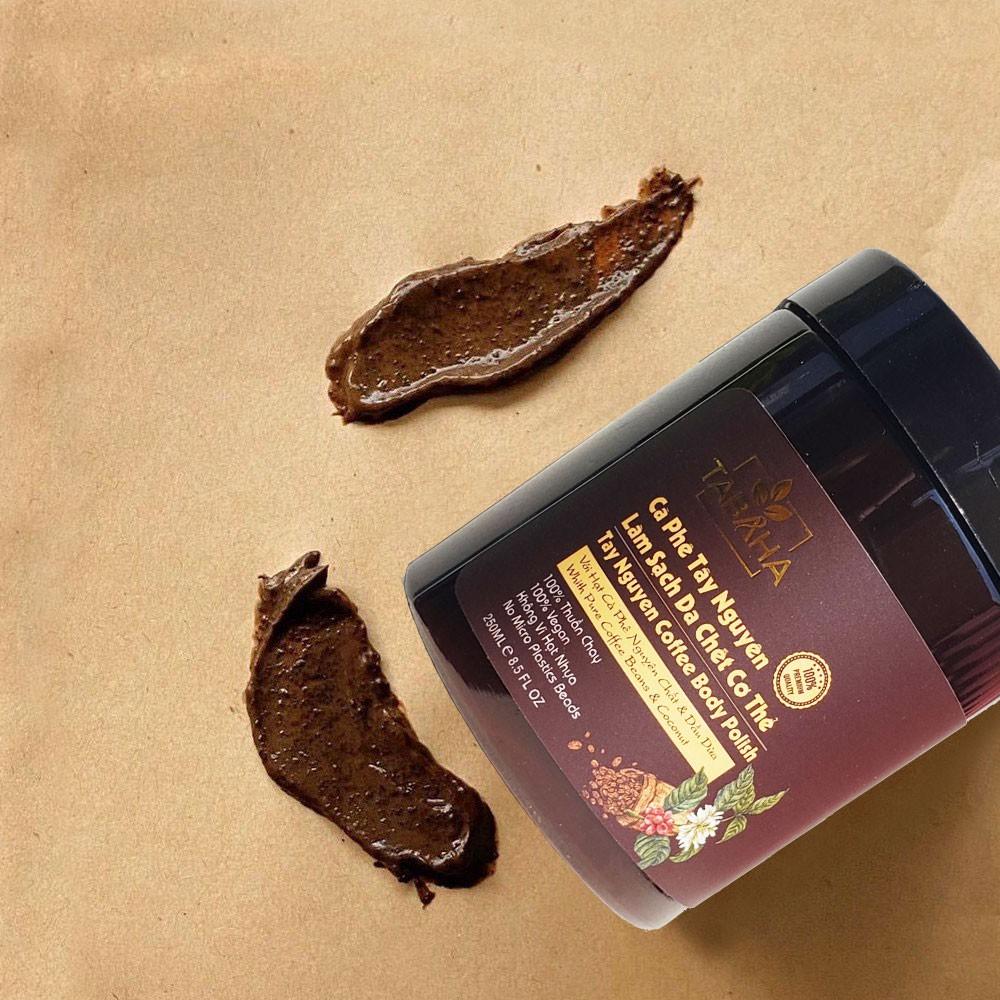 Combo 2 hộp cà phê tây nguyên làm sạch da chết cơ thể 250ml tabaha Thành phần chính: Cà phê Tây Nguyên: Cà phê có tác dụng cao trong việc chống oxi hóa, đặc biệt