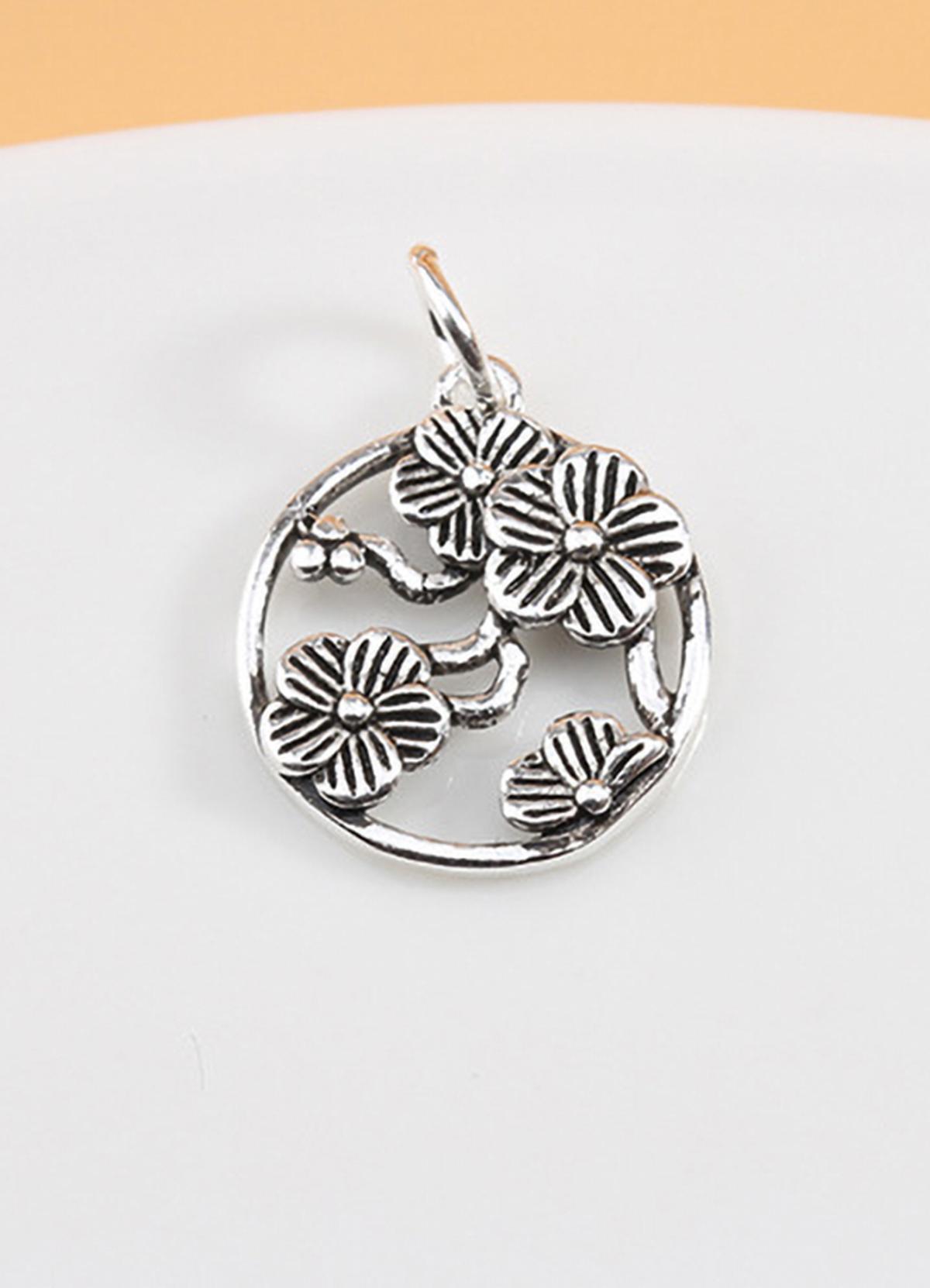 CHARM BẠC TRÒN HÌNH HOA 5 CÁNH TREO :