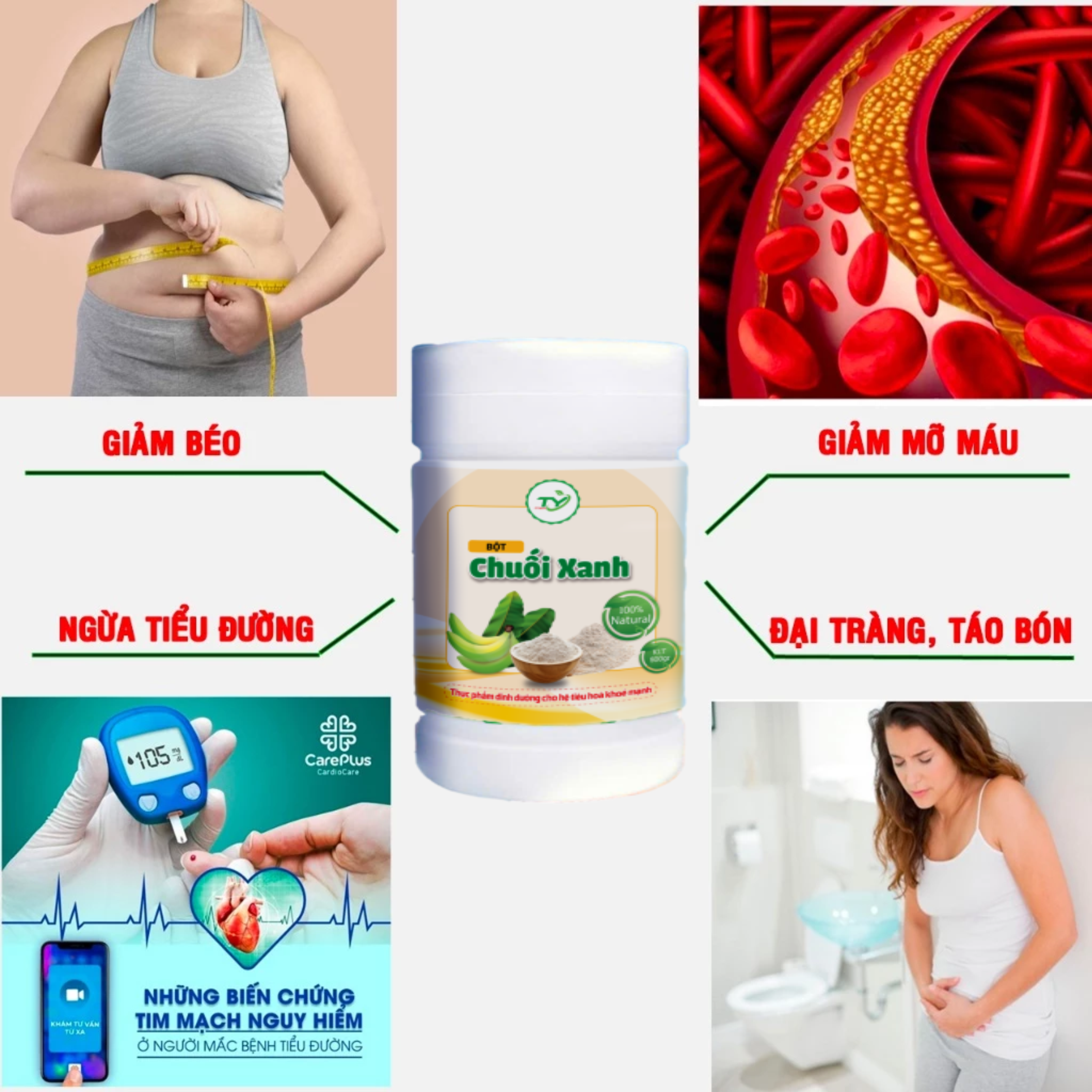 CÔNG DỤNG CỦA BỘT CHUỐI XANH Qua những phân tích dinh dưỡng trong bài Bột chuối xanh – siêu thực phẩm cho sức khỏe ta có thể tóm tắt những lợi ích sức khỏe mà bột chuối xanh mang lại như sau: