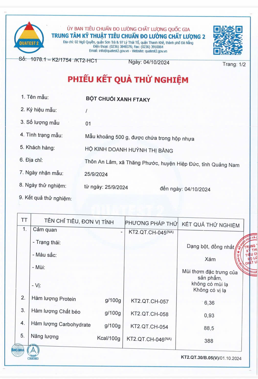 Sản phẩm bột chuối xanh an toàn cho sức khỏe không chứa gluten