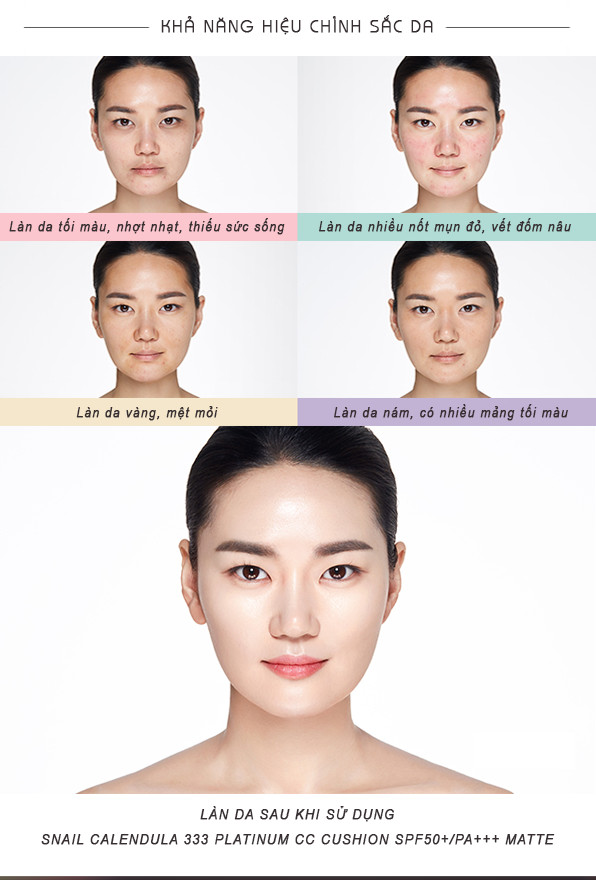 Xuất xứ: Hàn Quốc Vì sao bạn nên dùng Phấn Nước Snail Calendula 333 CC Cushion SPF 50+/PA+++ 100% thành phần tự nhiên an toàn cho da. Tích hợp trang điểm – dưỡng da –