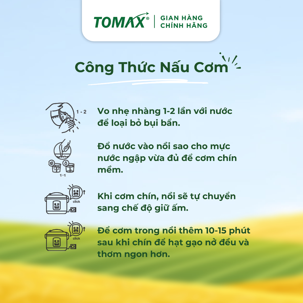Tomax hiểu rằng, mỗi bát cơm ngon gắn liền với sức khỏe và hạnh phúc của mỗi gia đình Việt. Vì vậy, tất cả các sản phẩm gạo sạch hữu cơ Tomax đều được chọn lựa theo tiêu chuẩn cao cấp nhất, đảm bảo uy tín - chất lượng - an toàn với người tiêu dùng, mang đến bữa cơm ngon, đong đầy và trọn vẹn cho mọi nhà.