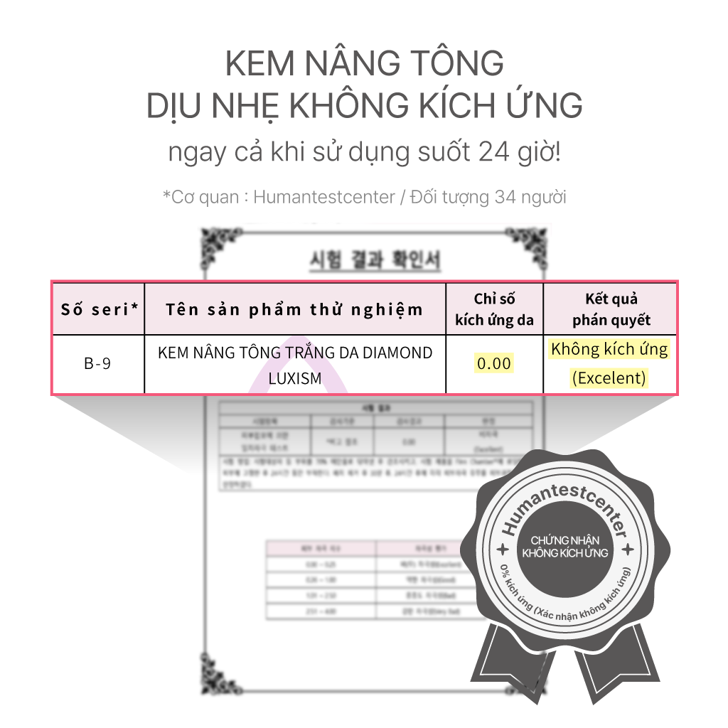 • Bất kỳ ai có tông màu da không đồng đều Có được làn da sáng, rạng rỡ một cách nhanh chóng và tự nhiên với Luxism Diamond White Tone-Up Cream. Trải nghiệm làn da tươi sáng, tự tin hơn mỗi ngày. Hãy để một sản phẩm này hoàn thành quy trình chăm sóc da của bạn! Đặt hàng ngay bây giờ và cảm nhận sự khác biệt cho chính mình! Tên sản phẩm Kem dưỡng trắng da Diamond Luxism Thành phần NƯỚC, GLYCERIN, DIMETHICONE, BUTYLENE GLYCOL, TITANIUM DIOXIDE, NIACINAMIDE, SODIUM ACRYLATE/SODIUM ACRYLOYLDIMETHYL TAURATE COPOLYMER, 1,2-HEXANEDIOL, CAPRYLIC/CAPRIC TRIGLYCERIDE, ISOHEXADECANE, POLYSORBATE 80, DIMETHICONE, CANDIDA BOMBICOLA/GLUCOSE/METHYL RAPESEEDATE FERMENT, CAPRYLYL GLYCOL, ORYZA SATIVA (DẦU MẦM GẠO), ALLANTOIN, DIMETHICONOL, ALUMINUM HYDROXIDE, SORBITAN OLEATE, ETHYLHEXYLGLYCERIN, TRIETHOXYCAPRYLYLSILANE, ADENOSINE, CAMELLIA SINENSIS (CHIẾT XUẤT LÁ TRÀ XANH), CITRUS SINENSIS (TINH DẦU VỎ CAM), SODIUM HYALURONATE, CITRUS AURANTIUM BERGAMIA (TINH DẦU CAM BERGAMOT), CITRUS RETICULATA (TINH DẦU VỎ QUÝT), HYALURONIC ACID, HYALURONIC ACID THỦY PHÂN, HYALURONIC ACID SODIUM, HYALURONATE THỦY PHÂN, HYALURONATE SODIUM, POTASSIUM HYALURONATE, SODIUM ACETYLATED HYALURONATE, DISODIUM EDTA, FRAGRANCE, ALPHA-ISOMETHYL IONONE, HEXYL CINNAMAL, LIMONENE, LINALOOL Cảnh báo Lưu ý khi bảo quản và sử dụng: a) Tránh xa tầm tay trẻ em. b) Bảo quản tránh ánh nắng trực tiếp.