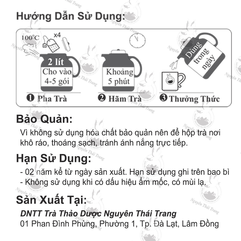 Mua tại TiktokTRÀ ATISÔ (Artichoke Tea) Theo tài liệu nghiên cứu cây thuốc Việt Nam, Atisô còn có tác dụng mát gan, thanh nhiệt, thông mật, lợi tiểu hạ cholesterol và urê huyết, làm sảng khoái tinh thần, giúp ăn ngủ ngon, làm mịn da mặt. Với những tác dụng tuyệt vời như vậy cùng với kinh nghiệm nhiều năm trong ngành Đông Y, Nguyên Thái Trang đã biết kết hợp cây Atisô và một số loại thảo dược khác tạo nên trà túi lọc. Dùng làm nước giải khát thay trà uống hằng ngày. Trà dùng được cho mọi lứa tuổi và cho người bị tiểu đường.